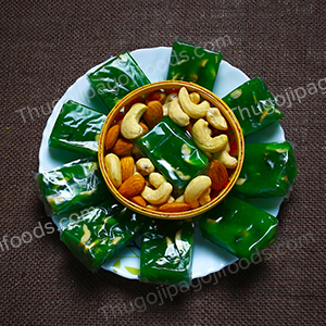 Thugoji Pagoji foods provide the most luscious green Badami Halwa. It’s ready from pure ingredients and finest quality desi ghee. Committed to produce the most reliable service to our honored purchasers, we tend to take utmost care in making ready the product right from the beginning until it’s packed and delivered. Our green Badami Halwa is made of arrorote, badam (almonds), combine clarified butter (oil), kaju (cashew) and pista and many other food coolers.